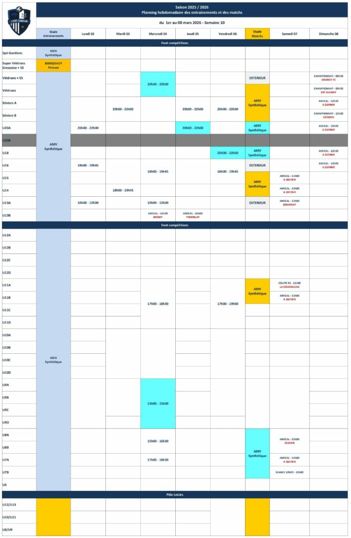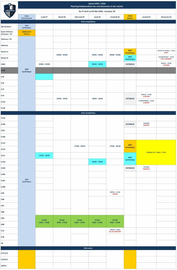 Planning de la semaine